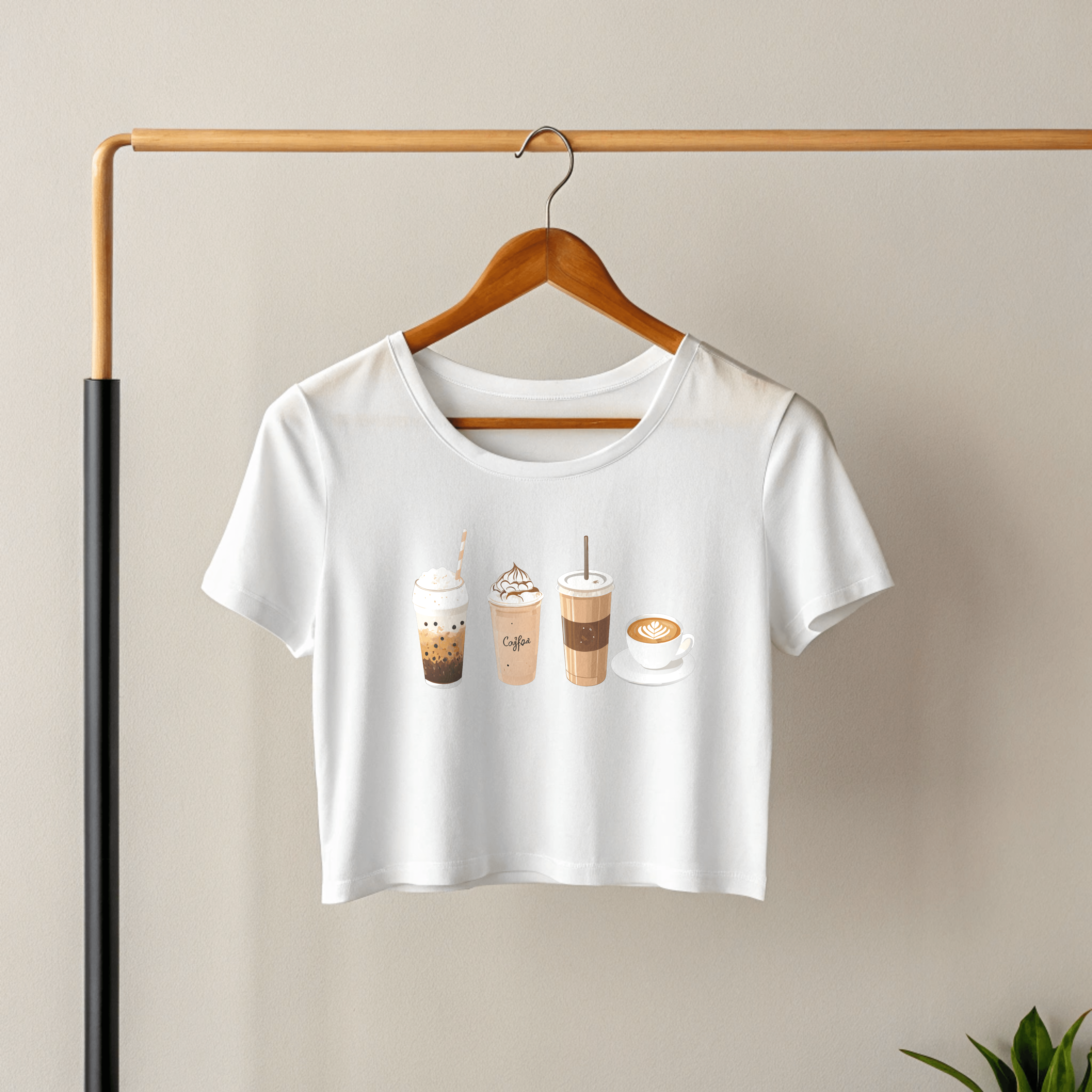 + Free ShippingCute cropped tee with aesthetic coffee drink illustrations – perfect for coffee lovers!